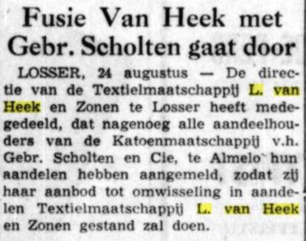 The company sought for allies, which led to cooperation with the spinning mill of L. van Heek en Zonen in Losser.