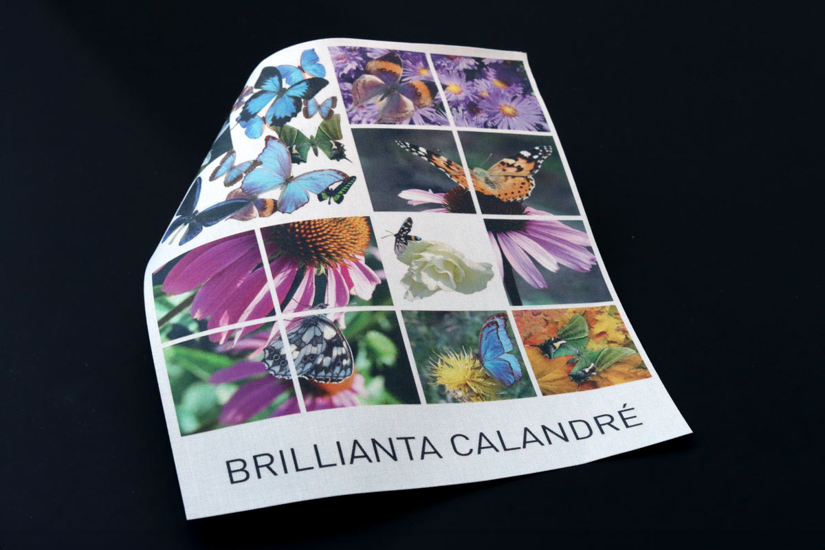 Although highly versatile, this method is most effective on smooth, coated substrates e.g., Buckram Premium, Buckram Light, Fancy, Metallium, Finesse, etc. On open-textured or coarse fabrics (e.g. Halflinnen Dark or Ecojeans), the ink may seep in, leading to blurred edges. For this reason, denser or coated materials are recommended. Nevertheless, rapid technological advances are making a wider range of substrates available for UV printing.